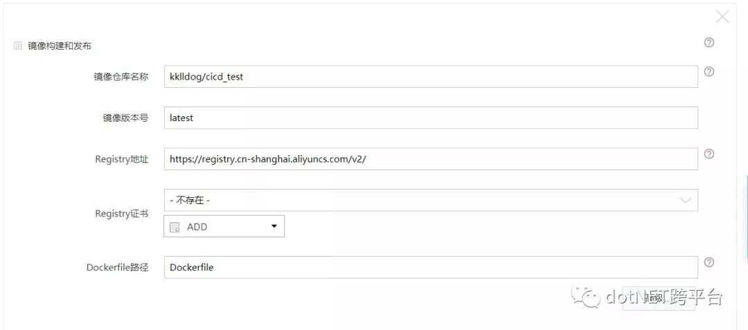 在“镜像构建与发布”界面填写刚才创建的仓库信息