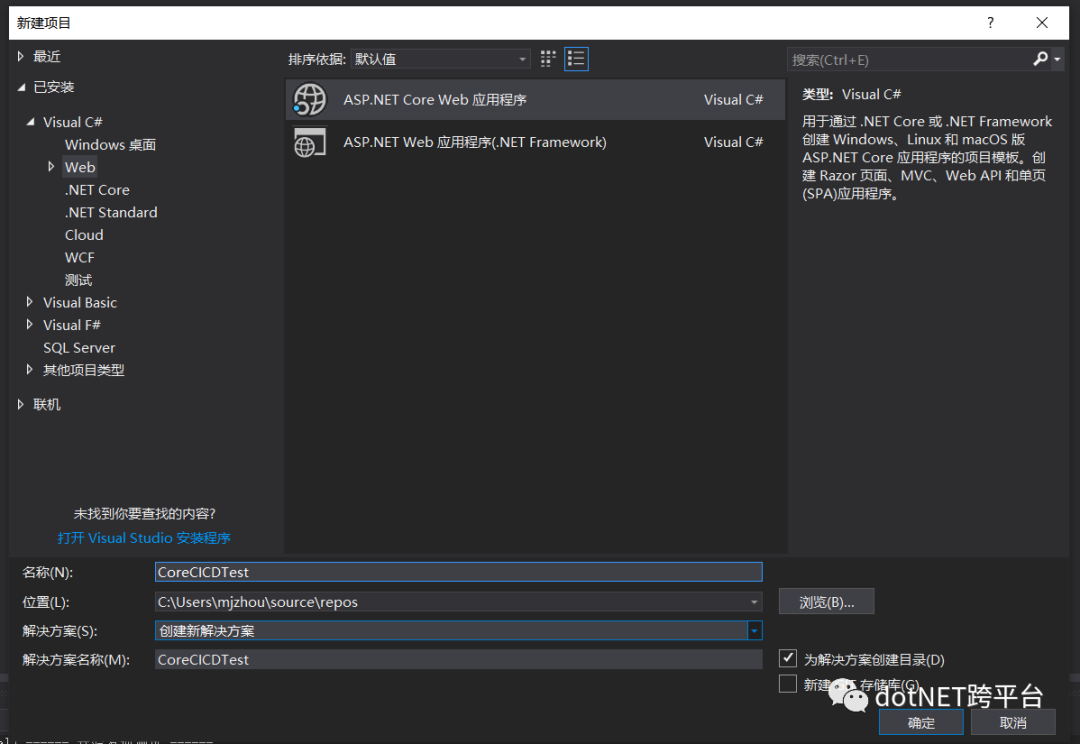 新建一个 .net core mvc 程序名叫CoreCICDTest
